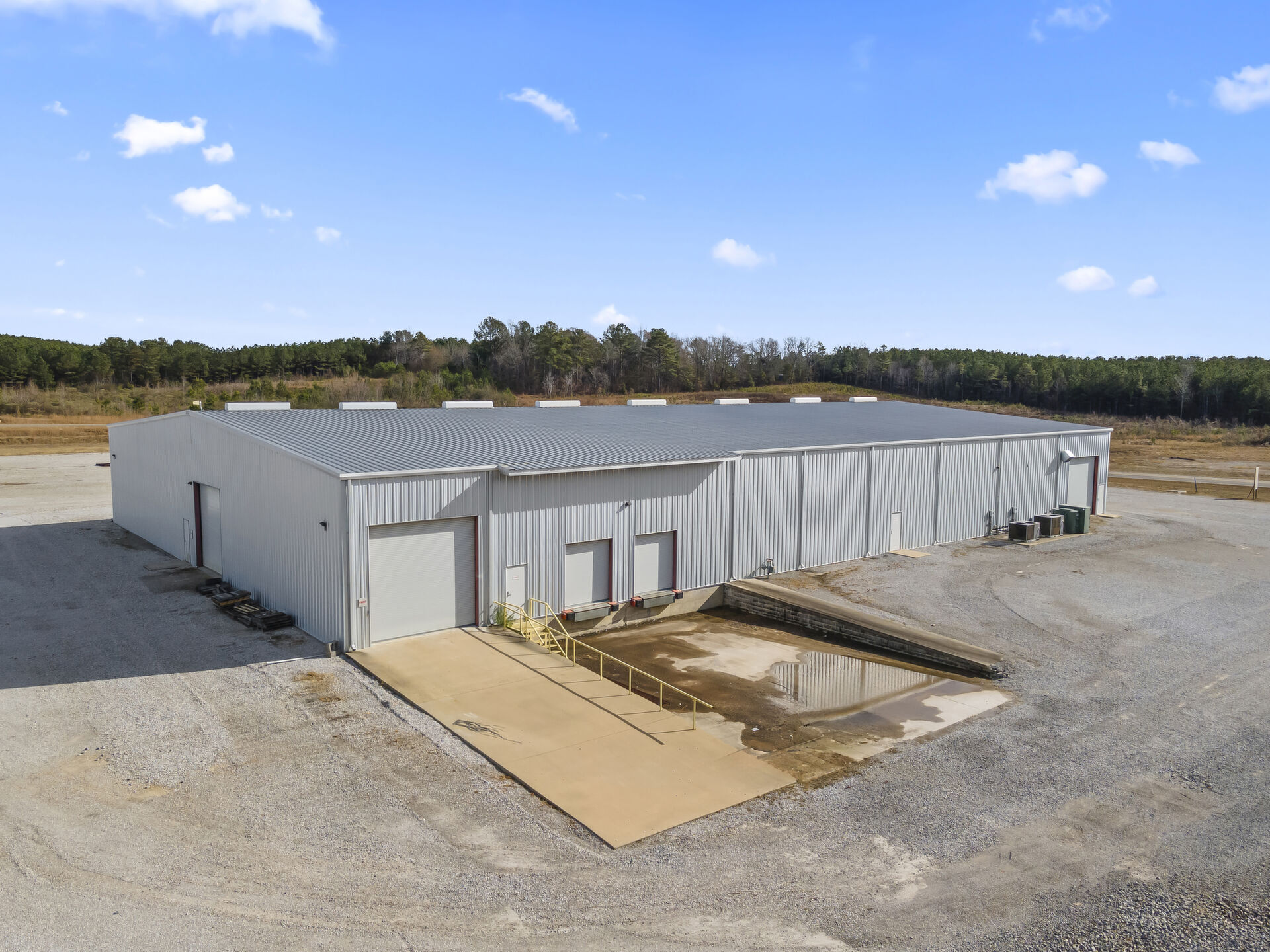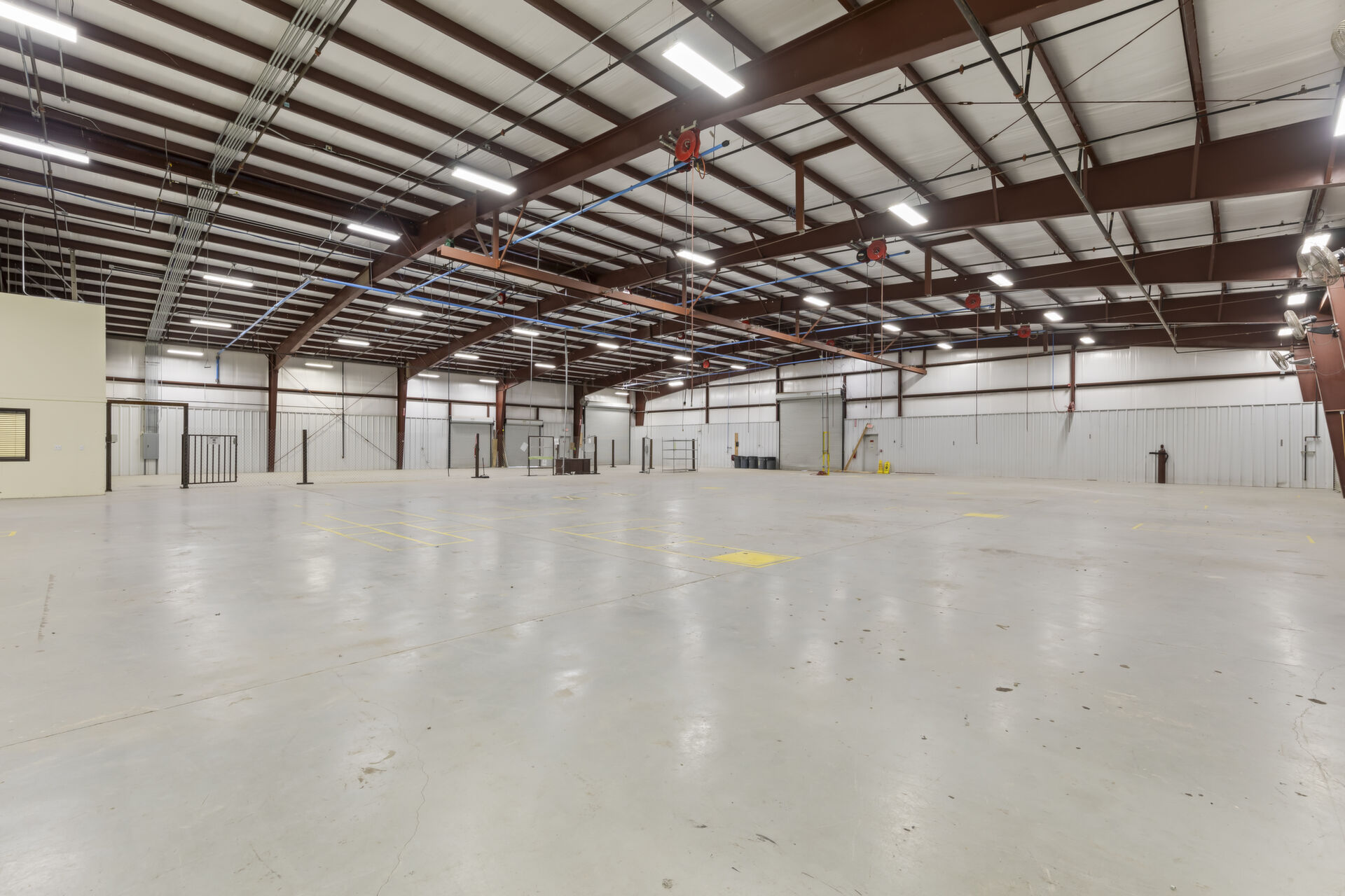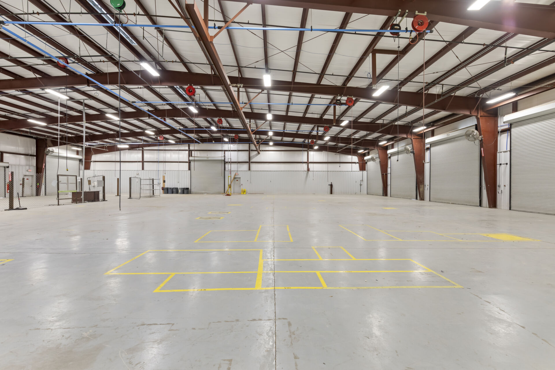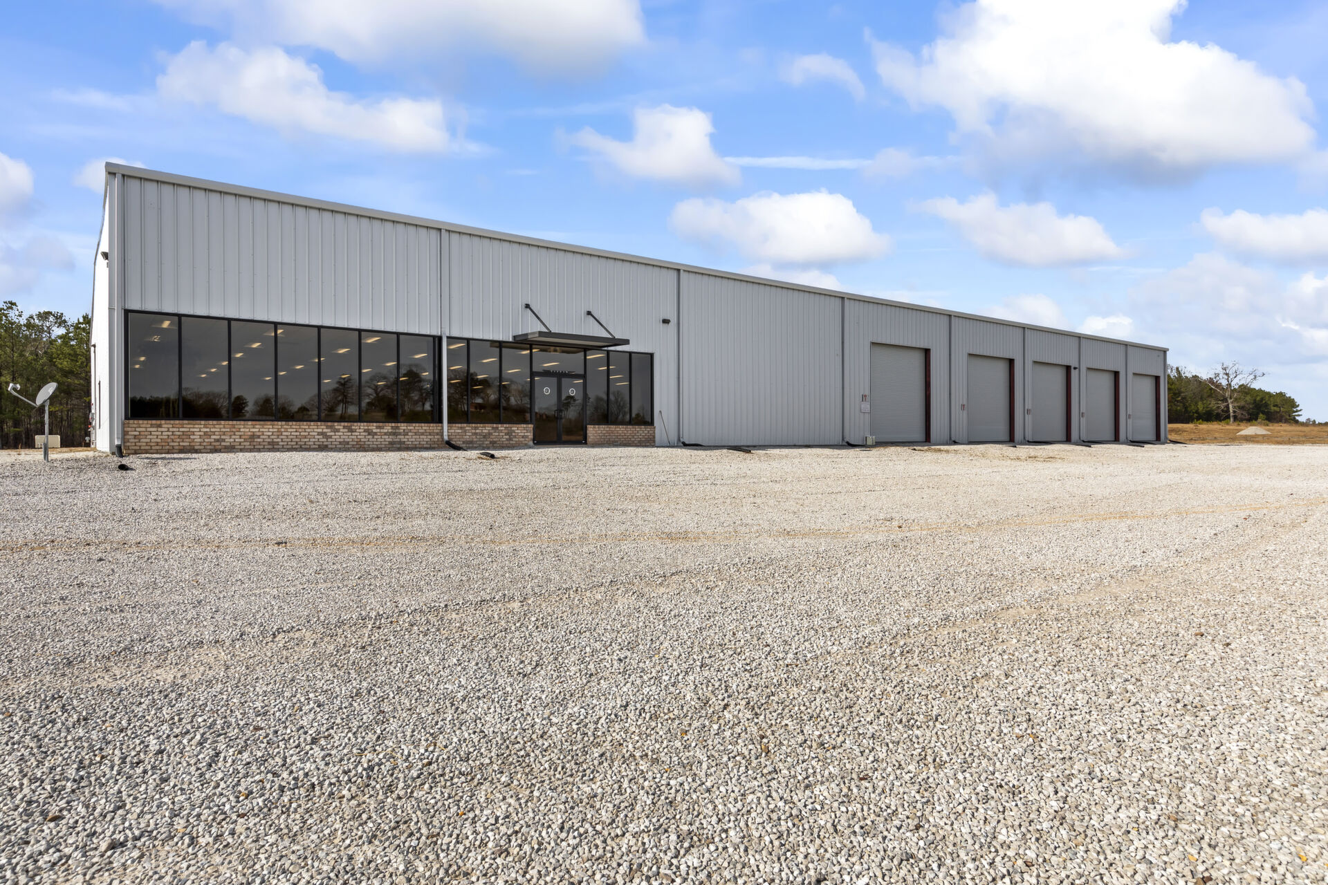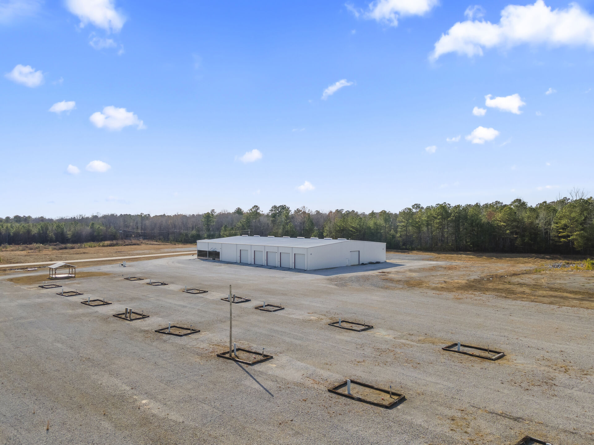 Industrial buidling:22,627 sq ft, 14.03 acres, 25ft ceiling and 20ft at sides, fully insulated, 10ft up metal walls in shop area, 20' column spacing, concrete 6", 11 electric roll up doors (2 with lowered docks and 1 with back in loading dock), 3 phase power, pull air hose reels stationed throughout shop area, industrial air compressor, LED lights, Bosch fire detection system, sprinkler system, mounted fans and ventilation, large fully furnished customer waiting area with kitchenette and men's and women's bathroom, employee break room with kitchenette, administrative/office area furnished with desks, cubicles and conference table, several private offices, 16 campsites each with 30 amp plug in and sewer hookup, employee pavilion.