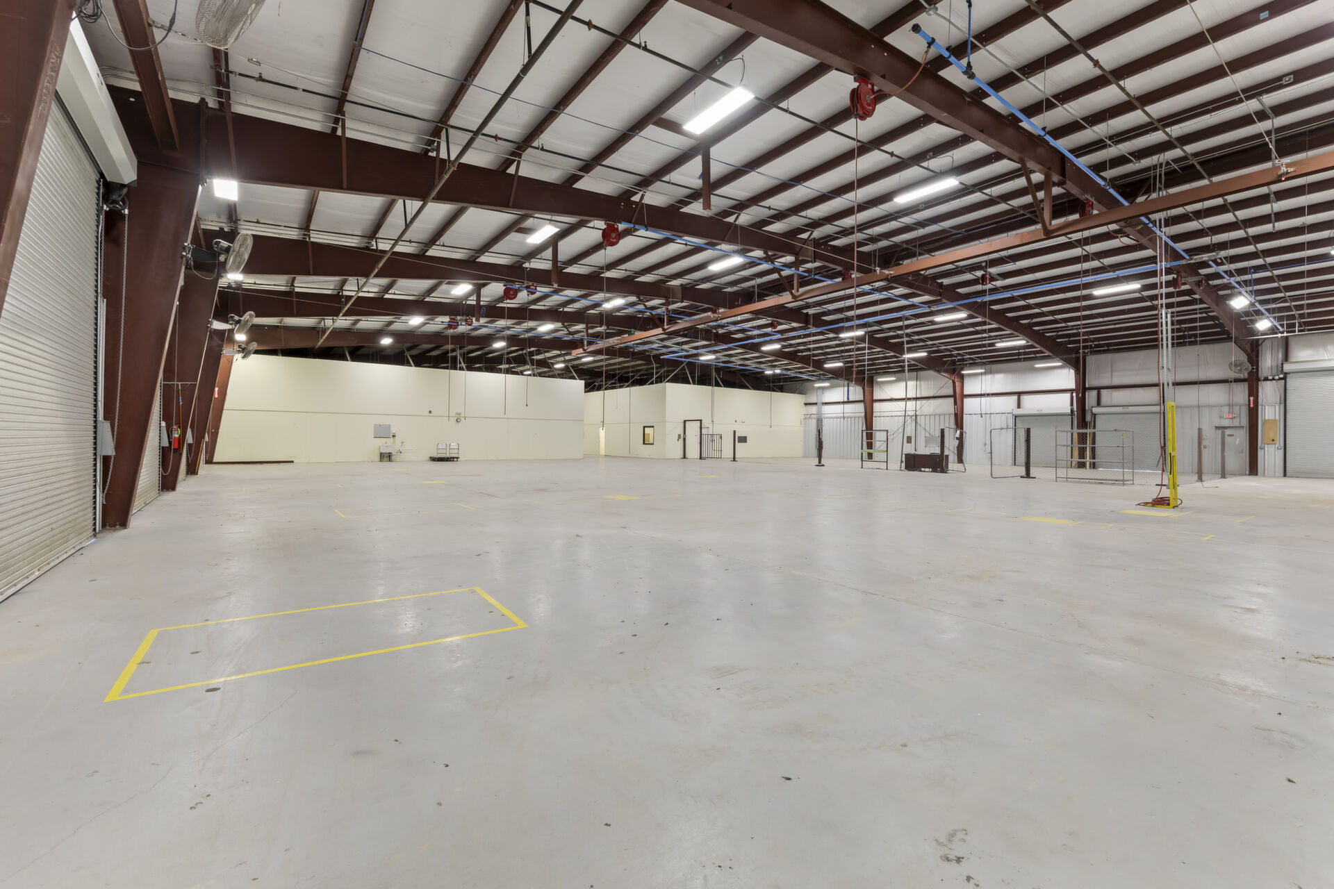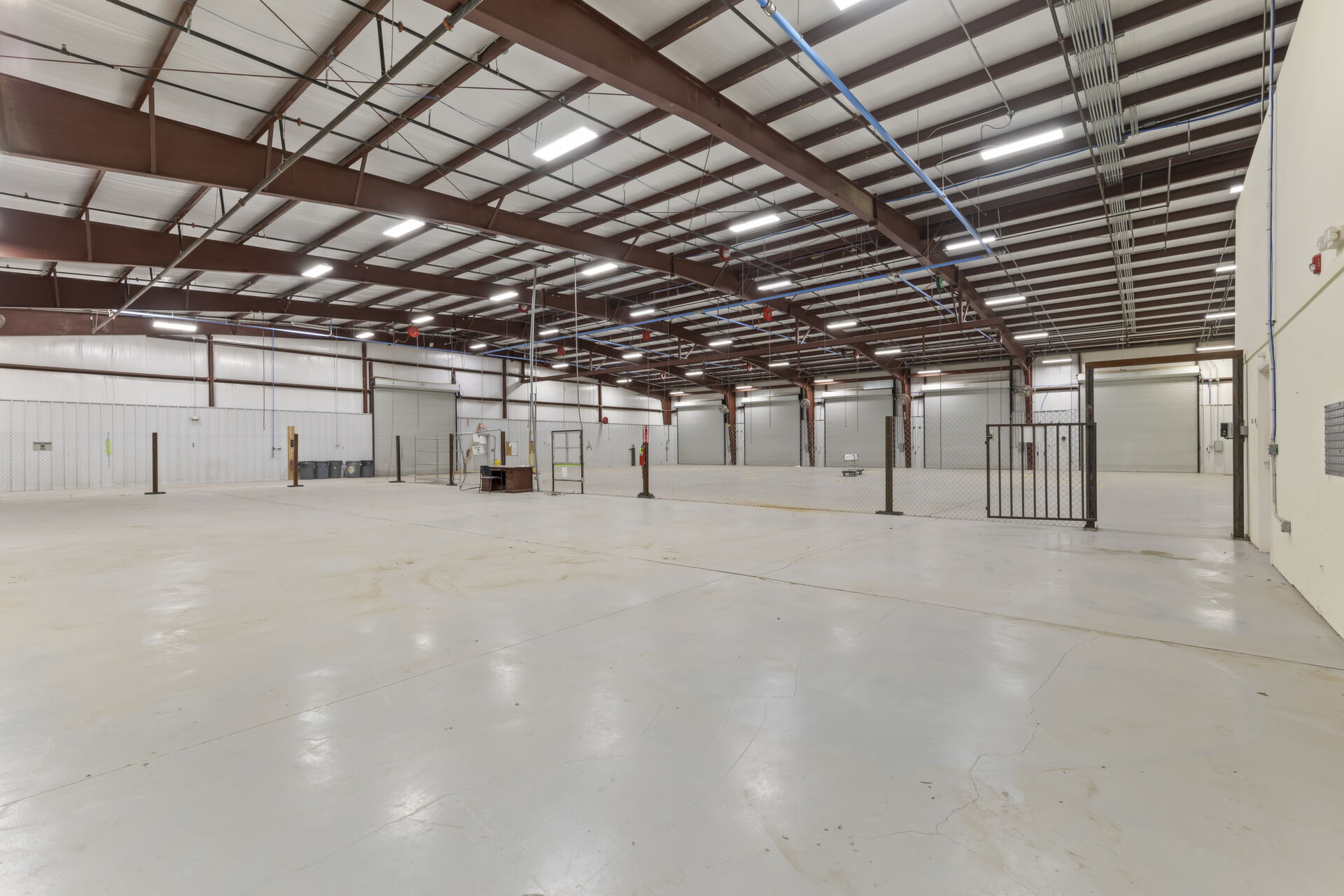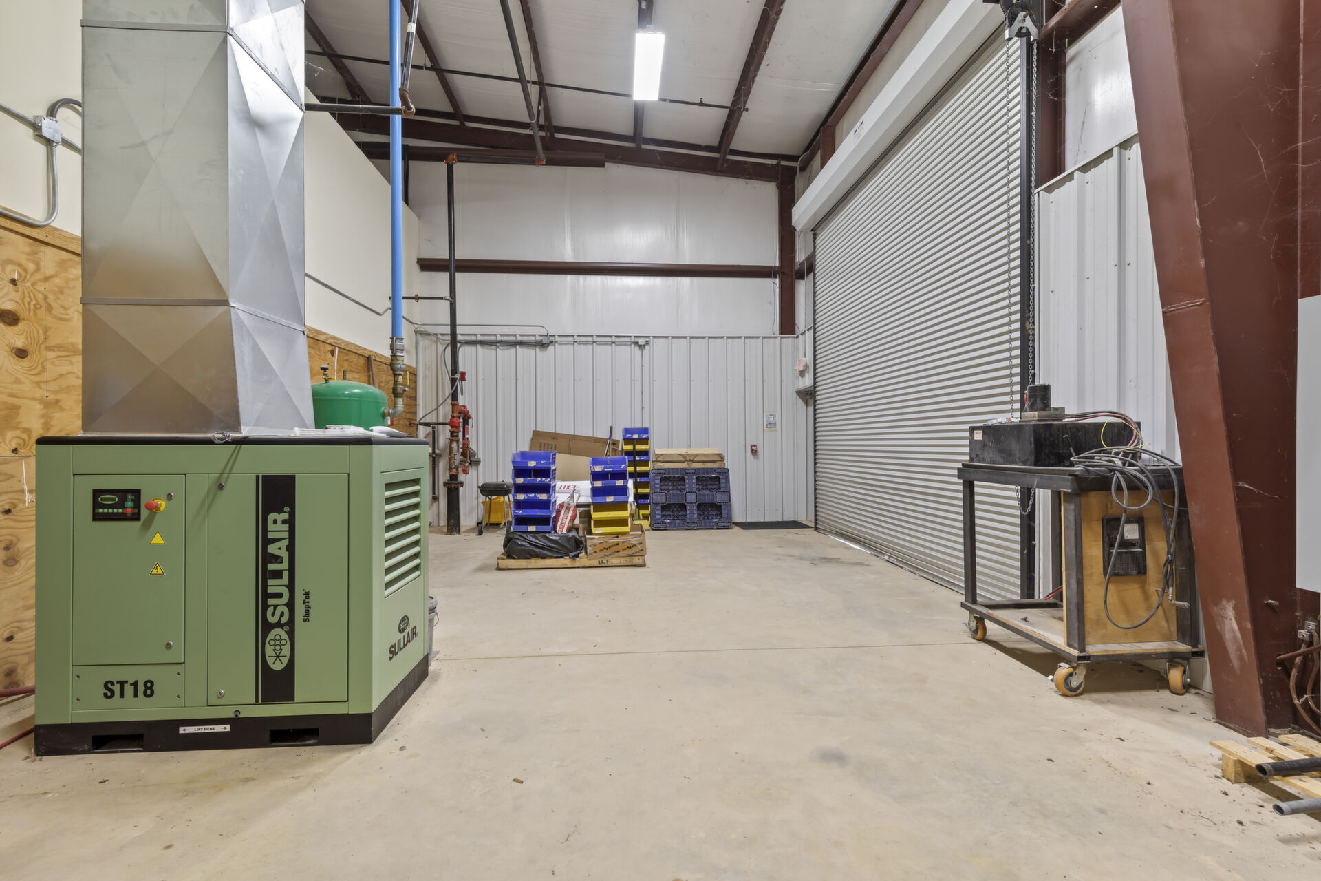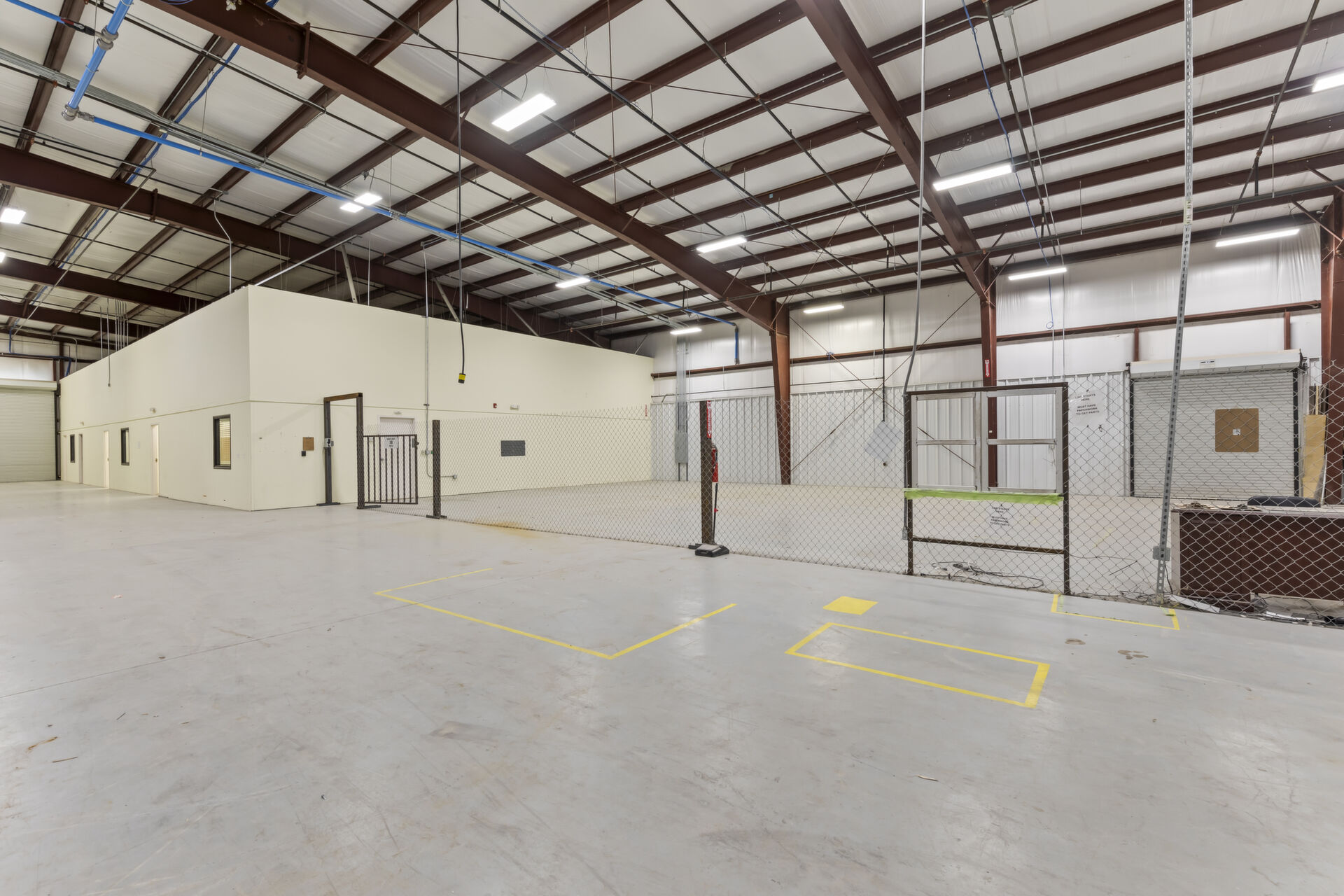 Industrial buidling:22,627 sq ft, 14.03 acres, 25ft ceiling and 20ft at sides, fully insulated, 10ft up metal walls in shop area, 20' column spacing, concrete 6", 11 electric roll up doors (2 with lowered docks and 1 with back in loading dock), 3 phase power, pull air hose reels stationed throughout shop area, industrial air compressor, LED lights, Bosch fire detection system, sprinkler system, mounted fans and ventilation, large fully furnished customer waiting area with kitchenette and men's and women's bathroom, employee break room with kitchenette, administrative/office area furnished with desks, cubicles and conference table, several private offices, 16 campsites each with 30 amp plug in and sewer hookup, employee pavilion.