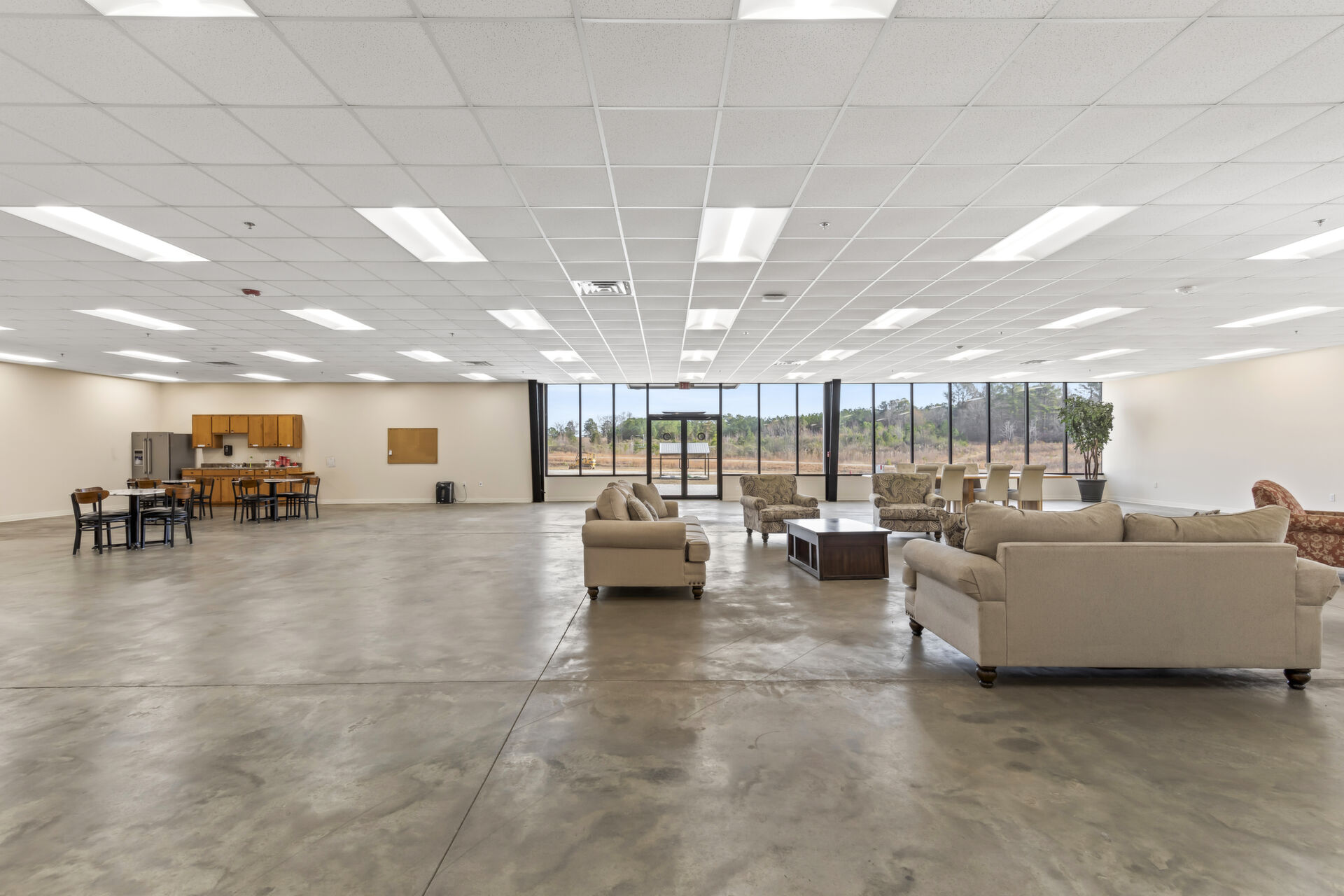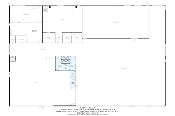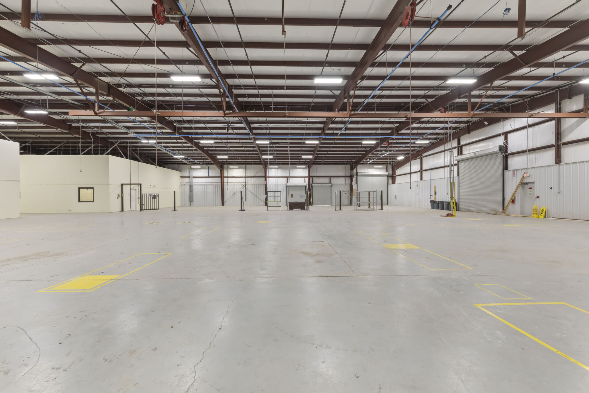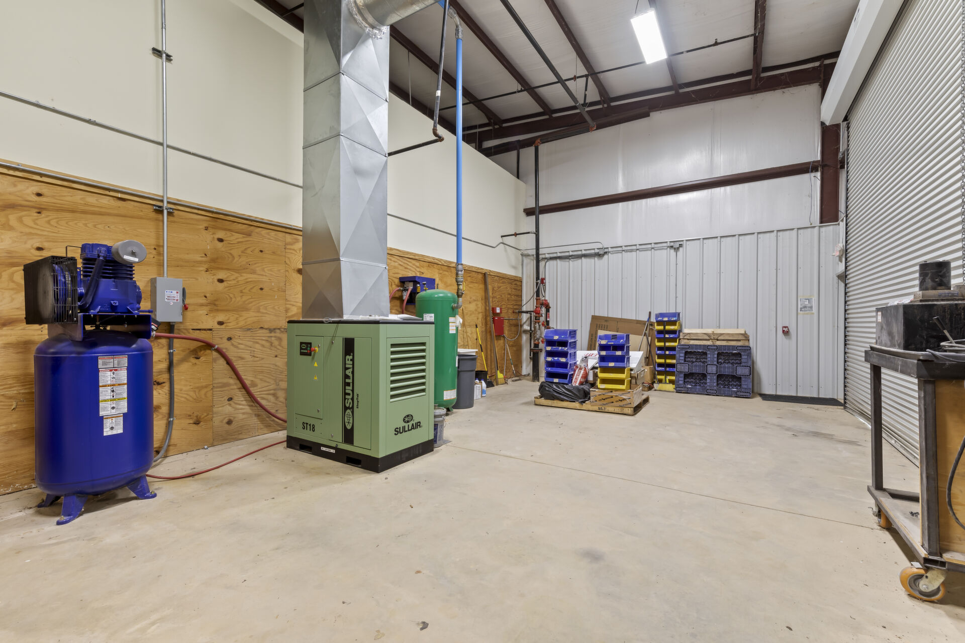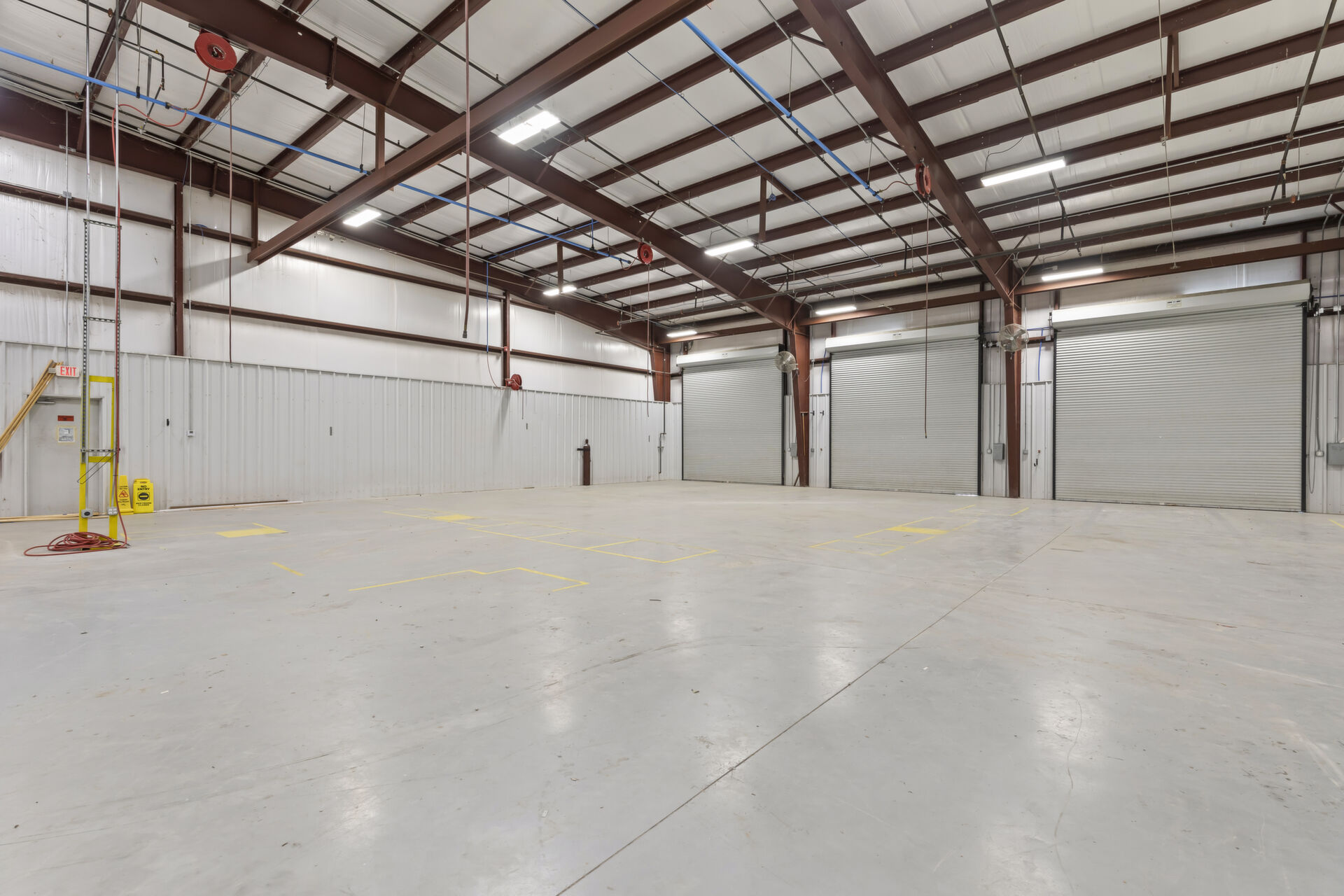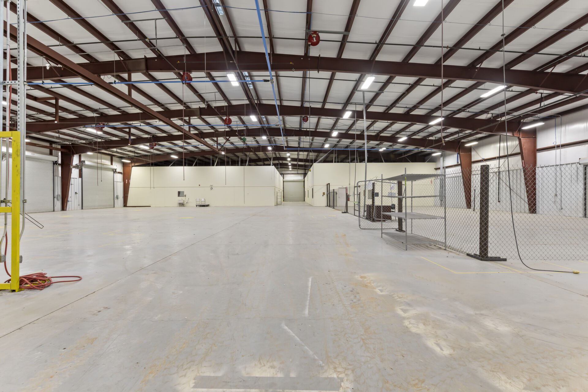 Industrial buidling:22,627 sq ft, 14.03 acres, 25ft ceiling and 20ft at sides, fully insulated, 10ft up metal walls in shop area, 20' column spacing, concrete 6", 11 electric roll up doors (2 with lowered docks and 1 with back in loading dock), 3 phase power, pull air hose reels stationed throughout shop area, industrial air compressor, LED lights, Bosch fire detection system, sprinkler system, mounted fans and ventilation, large fully furnished customer waiting area with kitchenette and men's and women's bathroom, employee break room with kitchenette, administrative/office area furnished with desks, cubicles and conference table, several private offices, 16 campsites each with 30 amp plug in and sewer hookup, employee pavilion.