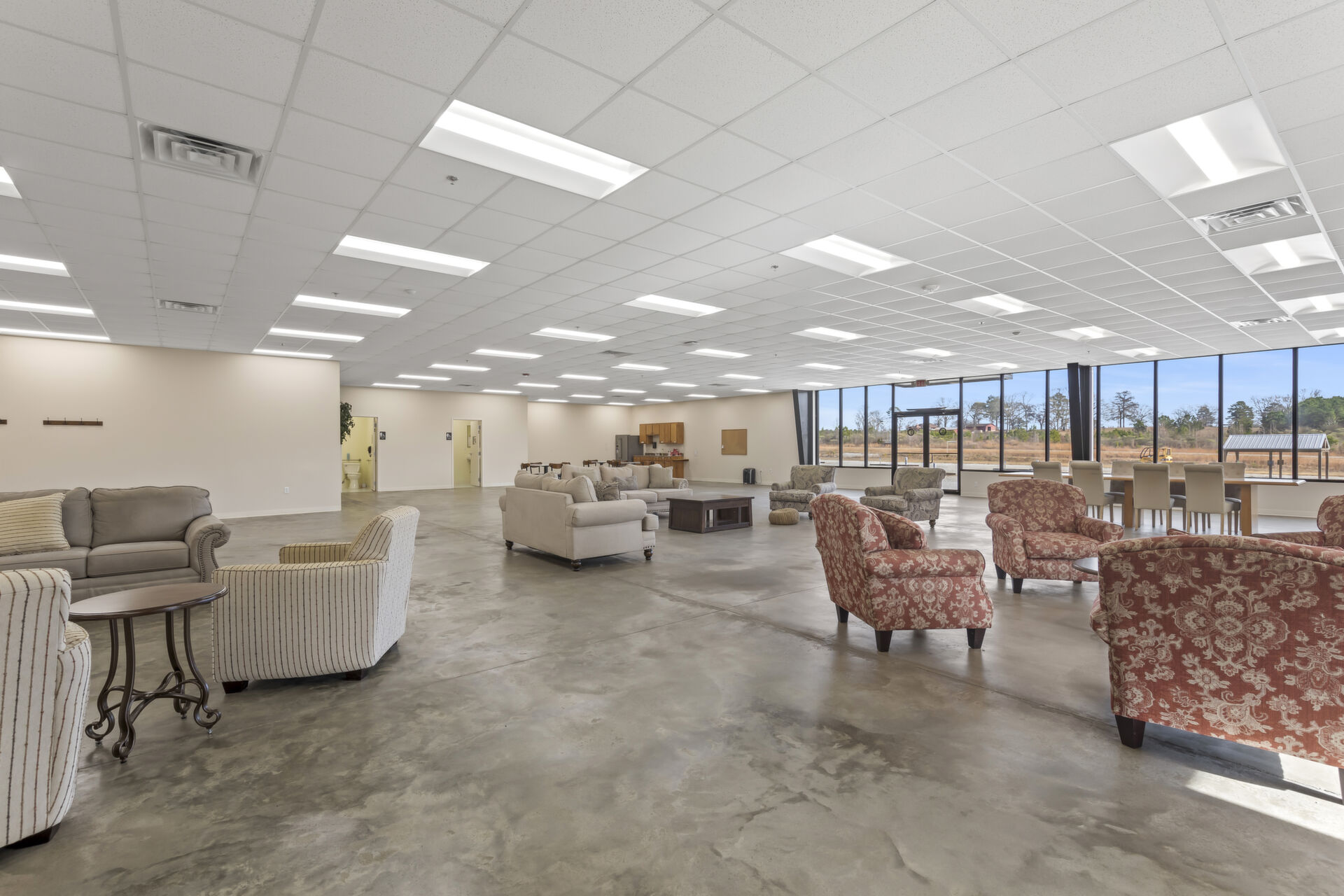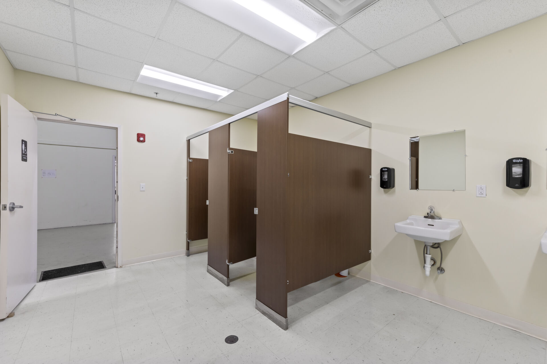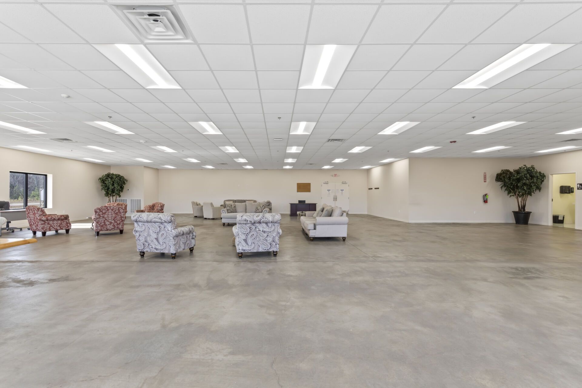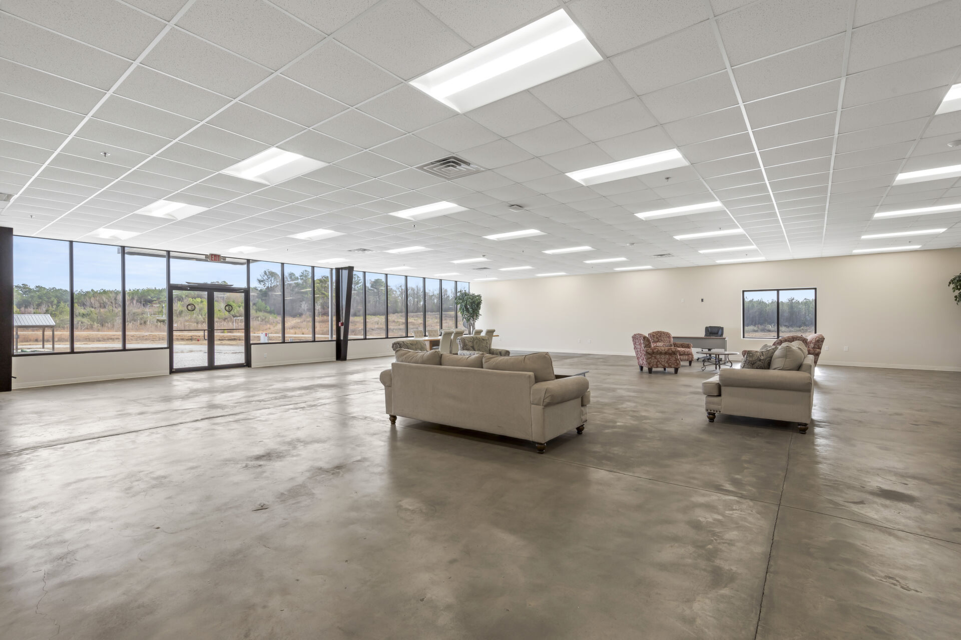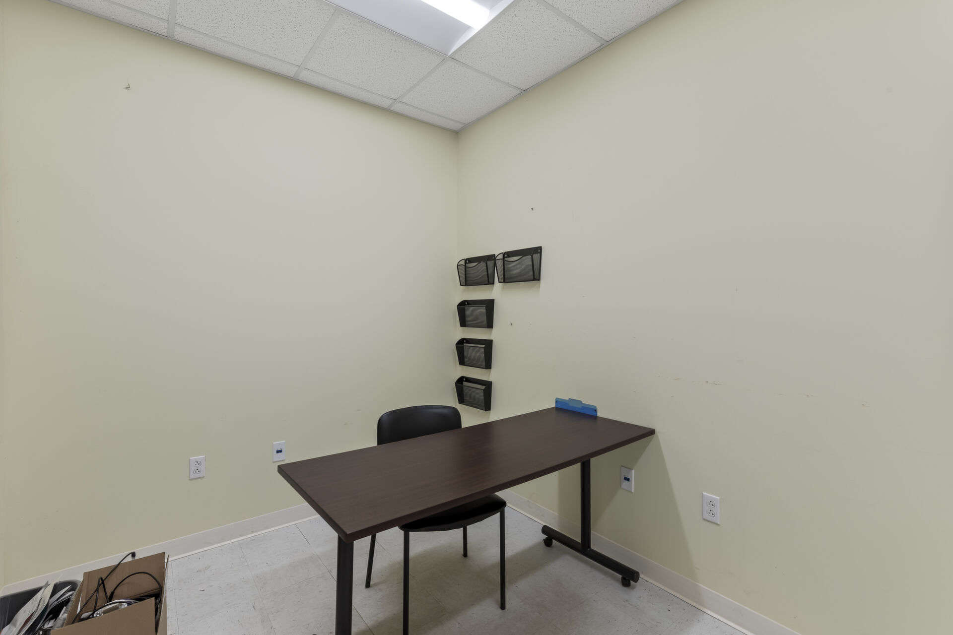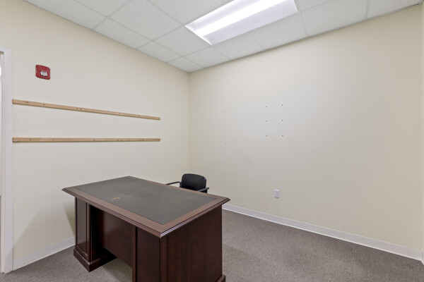 Office building: 1,600 sq ft, 12.59 acres, 10ft high ceiling, 200-amp single power, 3 private offices and open common area, men's and women's bathroom, fire detection and sprinkler systems.