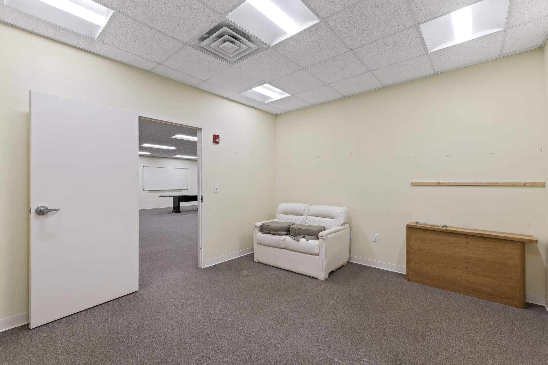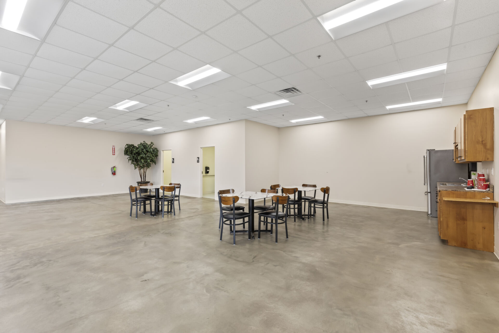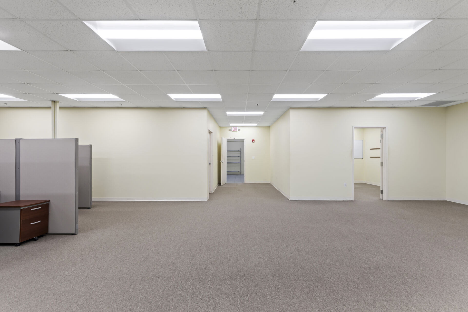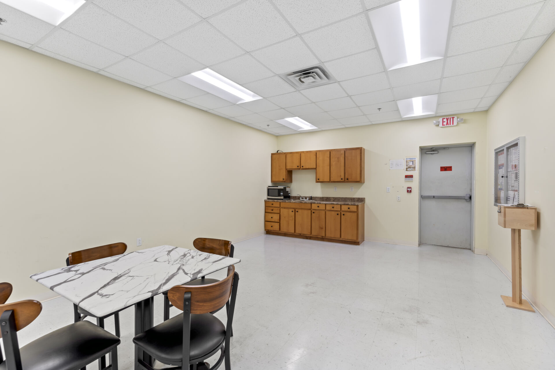Office building: 1,600 sq ft, 12.59 acres, 10ft high ceiling, 200-amp single power, 3 private offices and open common area, men's and women's bathroom, fire detection and sprinkler systems.