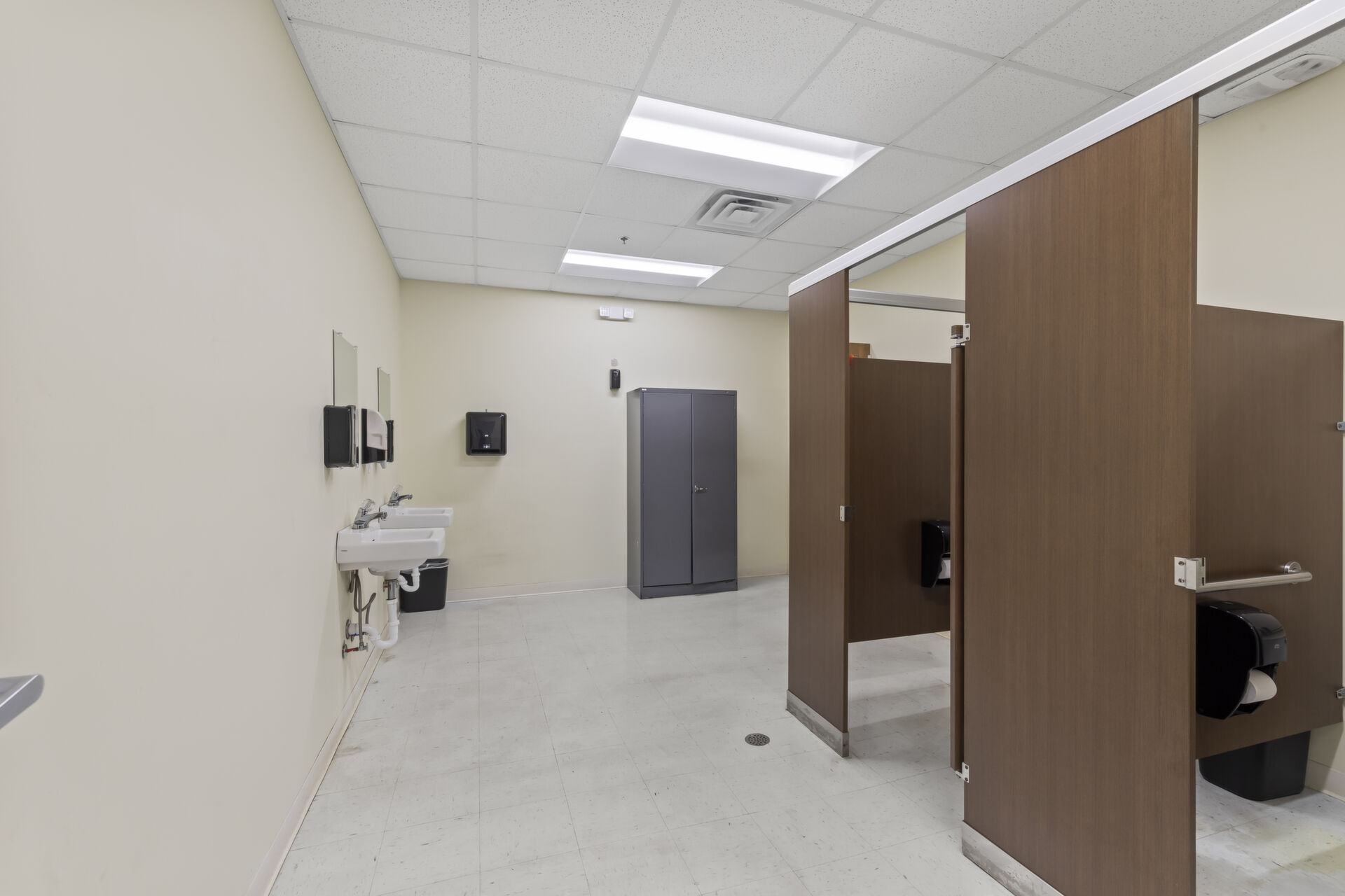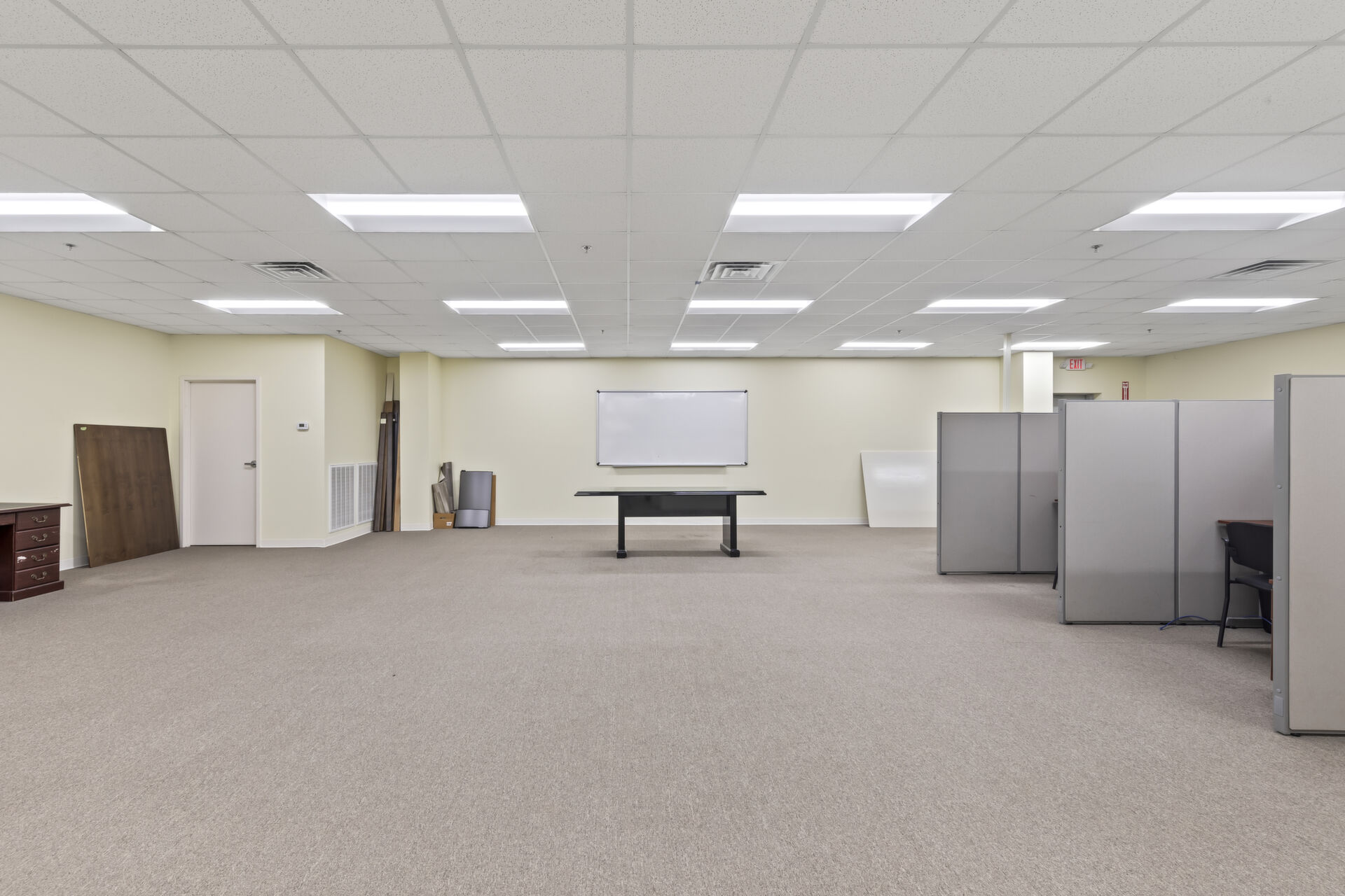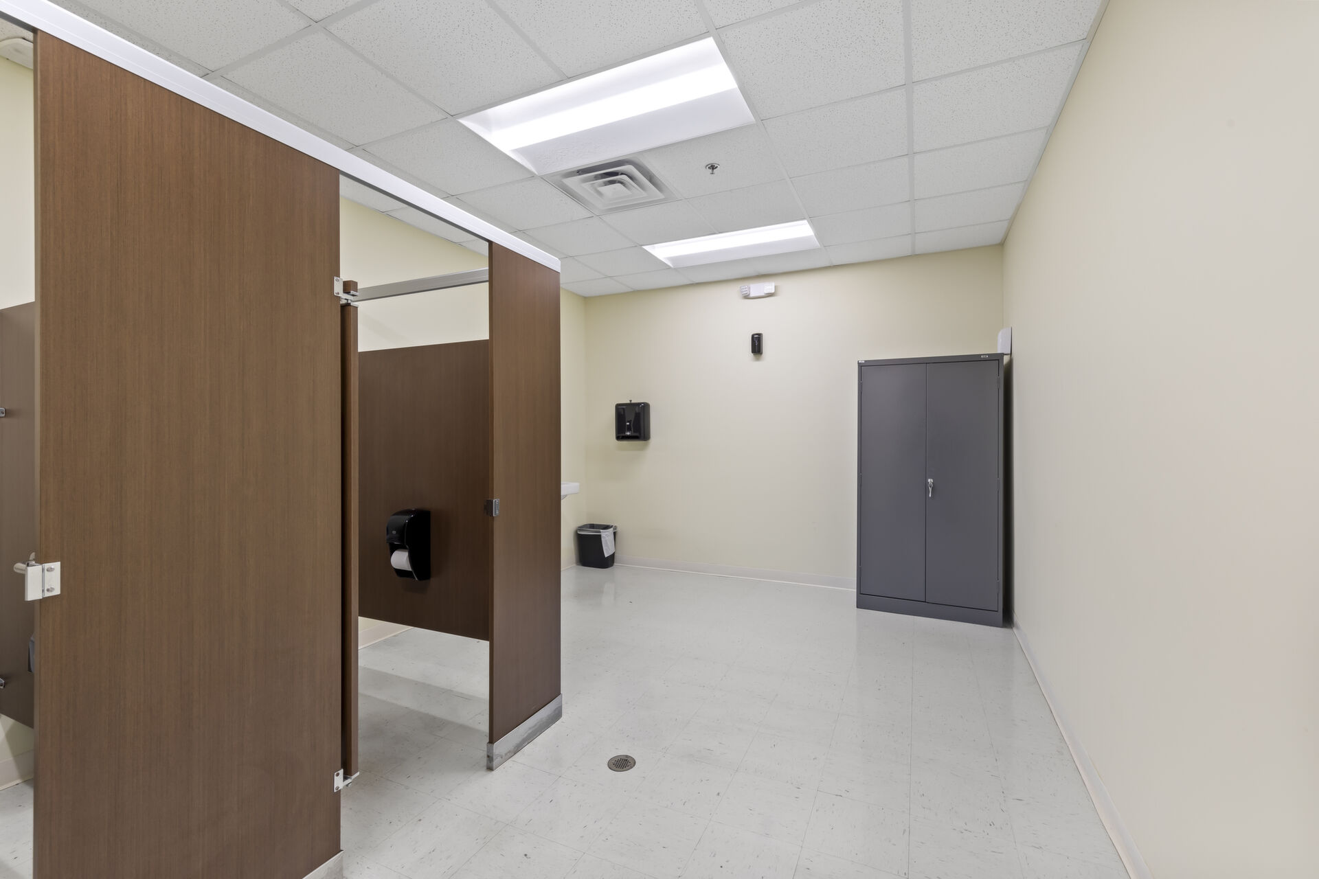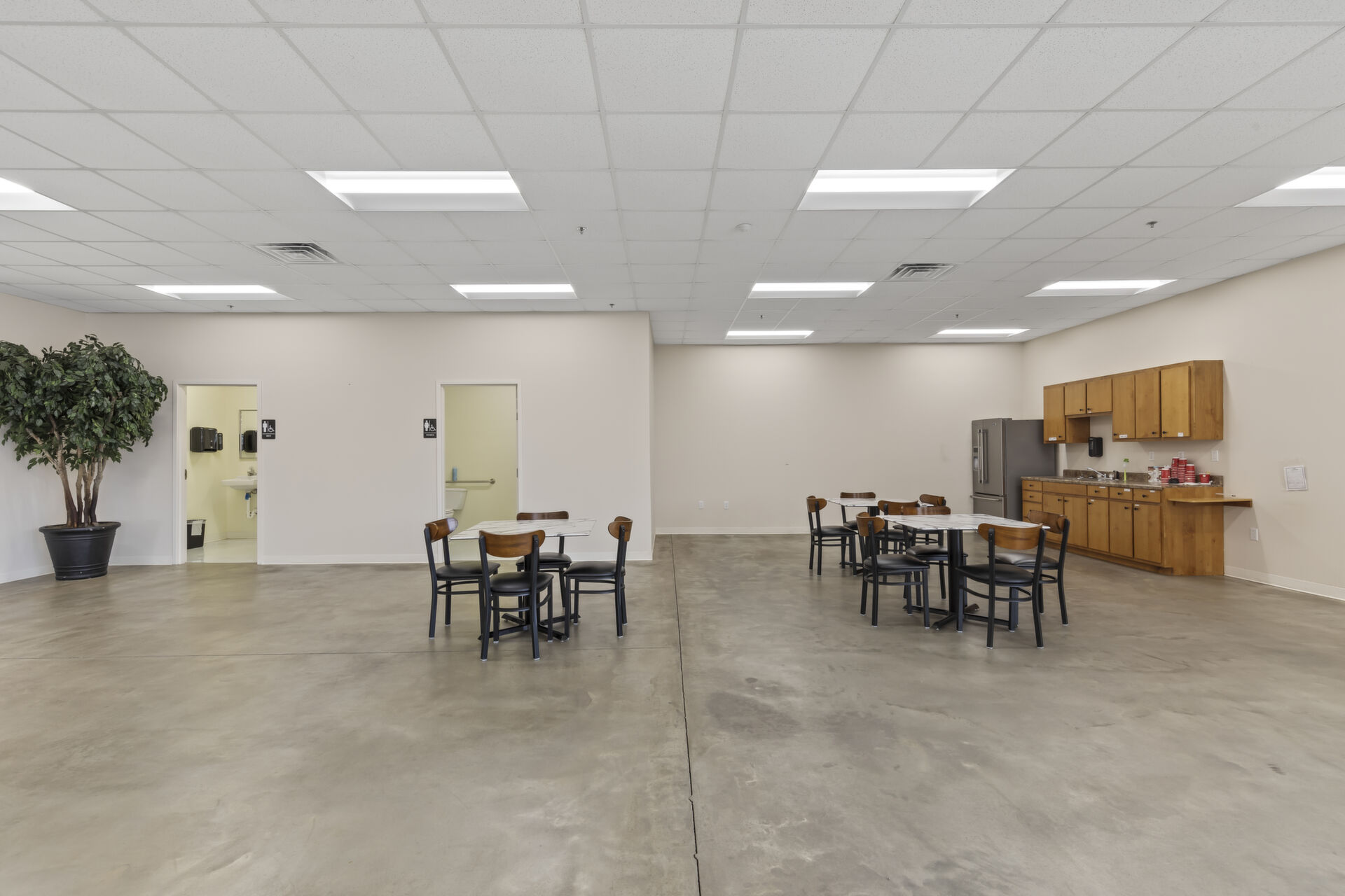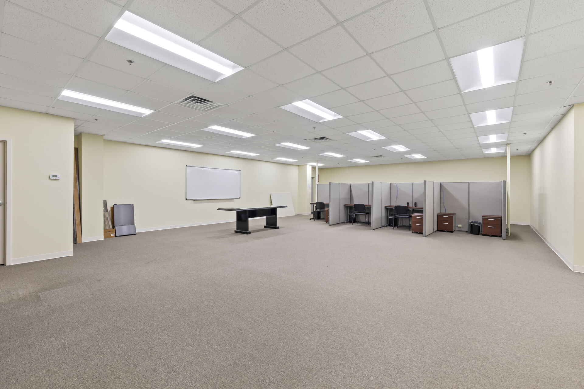Office building: 1,600 sq ft, 12.59 acres, 10ft high ceiling, 200-amp single power, 3 private offices and open common area, men's and women's bathroom, fire detection and sprinkler systems.